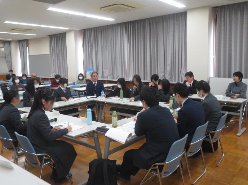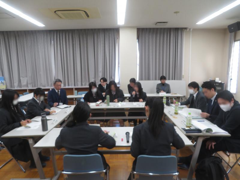 12月19日(金)、本校生徒会7名が、弁護士の方々と、現行の校則についての意見交換会を行いました。「時代に合わない校則を変えていく」という姿勢のもと、弁護士の方々のアドバイスや考え方を踏まえながら、服装・身だしなみに関する規定を中心に話し合いました。生徒会役員はみんな緊張した表情でしたが、自分の考えはもちろん、想定される反対意見なども出し合いながら、議論を深めていました。